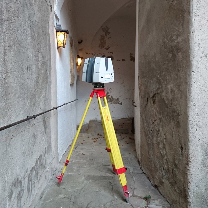 Anschlussmessung SeebarnBauabsteckung Flusspferdgehege Tiergarten SchönbrunnLage- und Höhenaufnahme des Hagenbachs für Hochwasserschutzmaßnahmen3D-Einmessung einer Burg mittels Laserscan zur Bestandsdokumentation und als PlanungsgrundlageEinmessen eines Targets zur Transformation von LaserscandatenEinmessen einer Gewässersohle